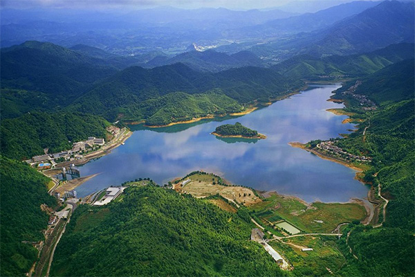 廣蓄電廠樞紐工程由上水庫(kù)、下水庫(kù)、引水系統(tǒng)、地下廠房洞室群、出線場(chǎng)等組成,上、下水庫(kù)天然落差為500多米。